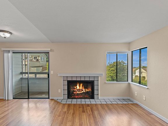 When you walk into the unit you walk into a foyer with storage closet. Through the entry is the large open living room with fireplace and views. Off the living room is the private balcony to the left of the fireplace
