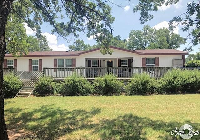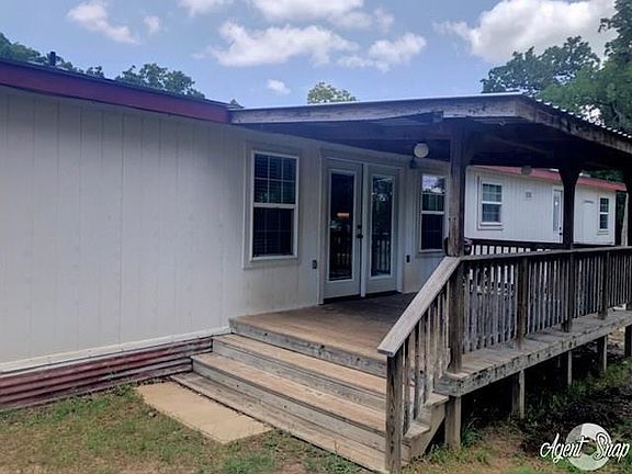 Beautiful double wide mobile home sitting on over 10 acres of treed land with large 20 x 64 front porch that is handicap accessible. Roof replaced spring 2015 along with an insulated well house. Water heater is less than 6 months old. The kitchen has custom built cabinets with unique pullout drawers for the pantry and abundant storage above the refrigerator which stays. This beautiful home is fully furnished with double paned windows, faux wood blinds, and lighting under & above the cabinets. Two skylights, one in the kitchen and the other in the master bathroom. Behind the lovely covered 9 x 15 back deck, there is a workshop storage building that measures 20 x 40 with working electricity & water hookups.