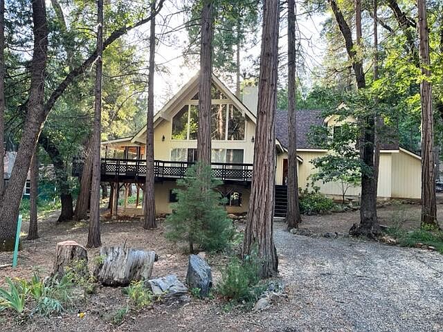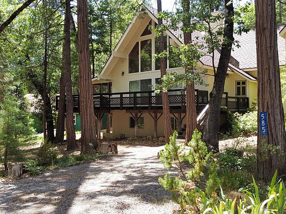Want a vacation home? This one is perfect and if you need to supplement the costs; Vacation rental it. This home can sleep alot of people. Beautiful 3-level cabin on the Loop, built for large gatherings. Top floor has a giant bdrm with 2 walk-in closets, a 2nd bdrm with its own deck, 3/4 bath and loft overlooking living room. Main floor has 2 bdrms, full bath, open plan kitchen/din rm/liv rm with vaulted beam knotty-pine ceiling and a giant window with a spectacular forest view, sliding doors open to a huge deck, safe for toddlers/pets. The kitchen has granite countertops, newer stainless-steel appliances and opens to a 2nd outdoor dining room, roofed and screened, overhead light and indirect lighting around the screened area with infrared heat - outdoor entertaining without insects! The basement has a huge game rm that comes with a professional pool table, 3/4 bath, generous laundry/utility rm equipped with 2 frigs, washer and dryer. The basement also has an extra rm with closet that has been used for overflow sleeping. Includes oversized 2-car garage and separate shop, all with automatic roll-up doors. Finally, there are 7 young Sequoias on the lot. Great for future generations to enjoy!! Access is on Linder with small parking in front and then access off of Legar which has more parking as well as the garage entry.
