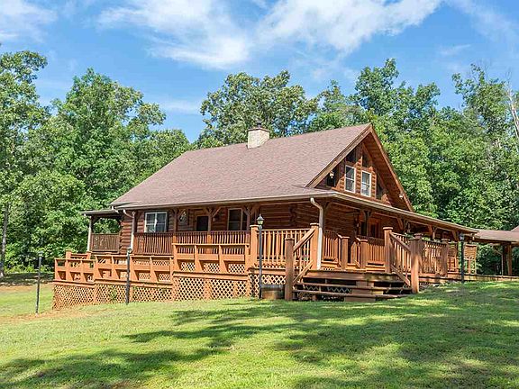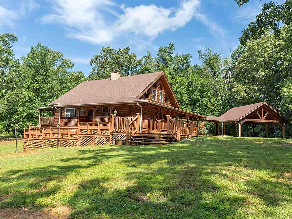 Beautiful log home with wrap around porch, detached carport with breezeway, high ceilings, stone hearth with wood stove, and detached garage with separate living quarters sitting on 5 gorgeous country acres. 2nd story loft perfect for a recreation area or a 3rd bedroom. Laundry closet on the main level. Located just a mile from the river, perfect for fishing or boating enthusiasts, as a vacation home, or your year-round retreat that you always look forward coming home to. Tour this beautiful property today!