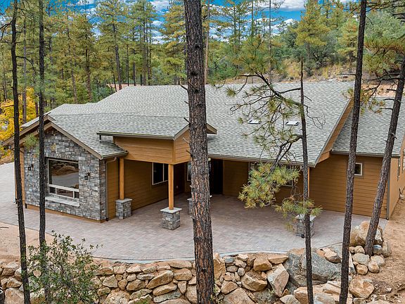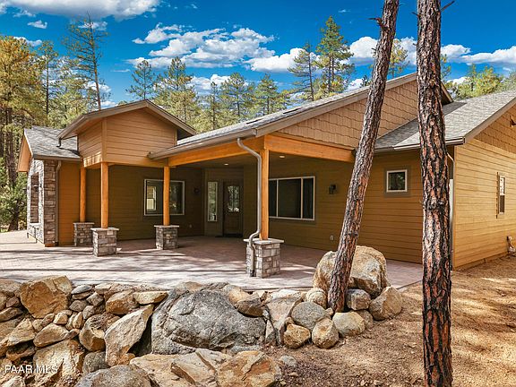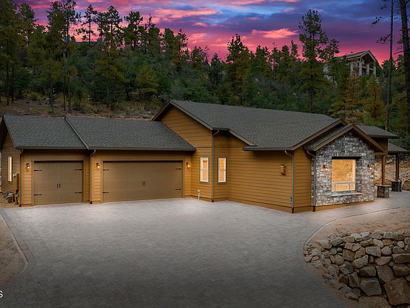 How about a majestic custom home located in the prestigious Highland Pines Community nestled in the tall pines of Prescott? This gorgeous home is full of upgraded features including matching granite throughout, tile flooring, and tasteful paint colors. Wonderful open and spacious great room boasts a large picture window and fireplace that will surely keep you cozy and warm in the colder months. It also has an adjoining formal dining room with coffered ceilings. The Kitchen highlights include Custom cabinets, 2 ovens, an oversized island plus a separate breakfast bar, Bosch SS appliances, and upgraded granite. The master bath is quite spacious with a garden tub, walk-in shower, and his and her closets. The Full-size laundry room has abundant cabinets for storage, matching granite Cont: