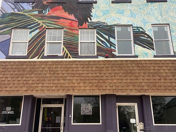 Welcome to the Lower West Side at the corner of Niagara and Jersey (Public Art Homeland Mural Building) where you are steps from D'Youville Campus, Kleinhans Music Hall, and the amenities of Niagara Street. Enter your new home from one of two entryways- one of which has a private landing with closet perfect for a mudroom or storage space. The massive living area (16x16), spacious bedroom (13x16) hosts two closets, eat-in area (7x8), connected to the kitchen (8x16), and full bath with brand new tub and surround (6x8) completes this bright upper unit. Enjoy the ease of in-unit laundry, new windows with screens, and a shared courtyard!