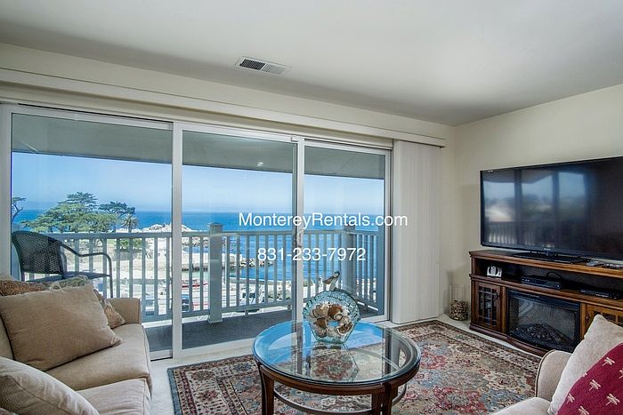 This modern condominium complex is situated directly in front of Lovers Point Beach and offers incredible ocean views from the living room and master bedroom. The full bathroom has double sinks, vanity and a shower over tub. The landscaping is professionally done and is provided by the landlord.