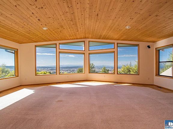 Classic NW home on Bell Hill with spectacular views of the San Juan Islands across the Straits of Juan de Fuca and stretching west to the Olympic Mountains. Reached by a winding concrete driveway framed by a lovely, maintenance free ground cover, this home is perched up on a hill with great privacy. A private backyard guarded by beautiful trees is fenced in for your pets. Up on the main level, the great room with vaulted tongue and groove wood ceilings allowing for large, spectacular view facing windows.