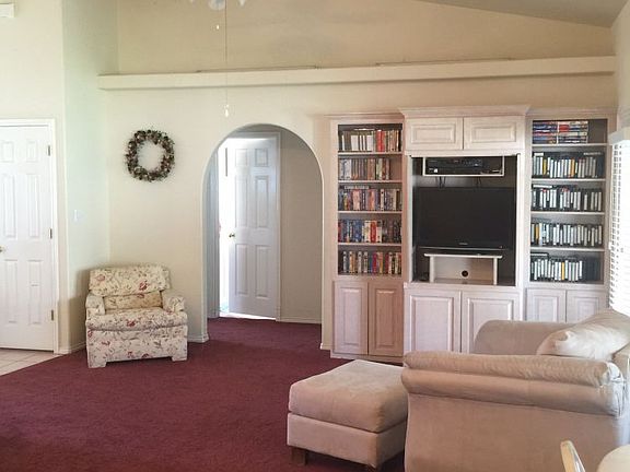 This home is in the popular Santa Fe Vistas, offering three bedrooms, two baths an office/den and a three car garage, one bay is partitioned off and is under air. Fully landscaped, with privacy fencing and a great back yard. This home needs a little TLC and is priced accordingly. It has a great open floor plan, with vaulted ceilings, pot shelves, arches and built-n entertainment center. The covered patio is right off of both the living area and the master bedroom. No HOA"S! This home is being sold as a short sale, and while in good condition it needs updating.