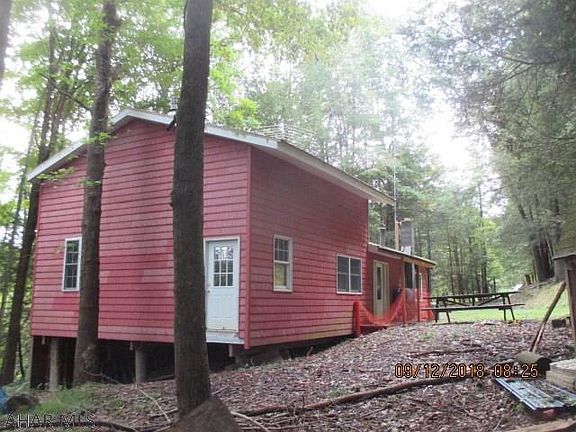 Secluded hunting camp or weekend getaway located on 24.913 wooded acres. Perfect for hunting, recreation, or make it your primary residence. Located in close proximity to Rock Run Recreation Area, State Game Lands, and trout fishing in Chest Creek. Camp features newer two story addition featuring cathedral ceilings, wood burner,bar, and loft bunk area and the original camp consists of a bedroom, kitchen, 3/4 bath, and dining/living room. These properties don't come up often.
