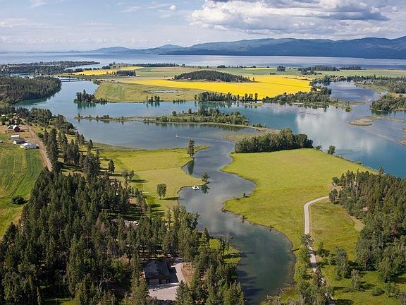 Premier property and homesite on the Flathead River! 47.55 acres, navigable 1344' feet of river frontage and 2229' on Swims Creek, located at the end of the road on a point,offering the ultimate in privacy. Includes 1200 sq.ft. 2 bedroom, 1 bath home, and 60x40 shop, barn and granary. Delightful variety in terrain includes two spring fed creeks, wetland,grass pasture, timber. and rock outcroppings