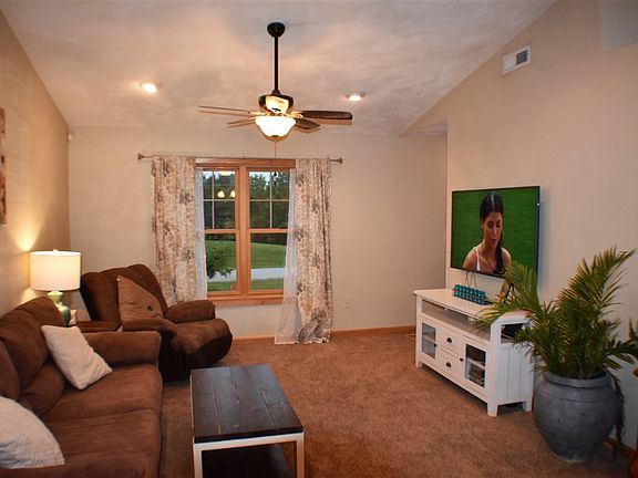 Don't miss out on this newer construction 2 bedroom, 1 bath home (built in 2017) located on a quiet, dead end street. Open concept living room & kitchen featuring a trendy island with solid surface top, Stainless Steel appliances, and vaulted ceilings. Gorgeous hickory cabinets, doors, and trim throughout. Convenient laundry hookups in the large bathroom. Attached 1-car garage finished with plastered walls and ceiling. Great front porch and newly constructed deck on the back of the home, overlooking the koi pond and extra deep lot. New utility shed stays.