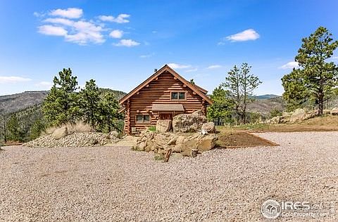 This beautiful log home is located just 30 minutes from Old Town Ft. Collins and is surrounded by forest. Stunning views can be easily appreciated from the many windows and wrap around deck.There are many neat rock outcroppings and fun places to hike around on the property. The home has new carpeting and a newly finished basement with a theater and game room. Outdoors, the home is surrounded by custom hardscaping, a paddock with a large fenced-in grazing area, and a fenced in chicken coop. The logs have been meticulously maintained, and there's a generator for backup power!