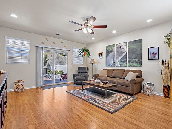 Welcome to 585 Rio Grande A, a luxury patio home in the sought-after Ridgewood Heights Subdivision. This pristine 3-bedroom, 2-bath home is not only a haven for any lifestyle but also a convenient one, being ideally located near the hospital, I-70, airport, and town. It's a perfect fit for those with busy schedules who still want to enjoy the luxury of a townhouse. Step inside to find a beautifully appointed interior featuring newer flooring, granite countertops, and stainless steel appliances. The home also boasts custom stained glass windows, new sinks, hardware, light fixtures, LED lights, and fans. Enjoy the comfort of refrigerated central A/C and tinted windows that enhance energy efficiency. The epoxy floor in the garage adds a polished touch, and the 2-foot buffer between units ensures privacy. Outside, you'll find great views, a walking path behind the house, a raised garden bed, a plum tree, and an apricot tree. Two adjustable pergolas offer shade and style for your outdoor space. With an HOA that maintains all landscaping, you can relax knowing the hard work is taken care of. This impeccably cared-for townhouse truly offers the best in low-maintenance luxury living. Don't miss your chance to own this exceptional home—schedule your showing today!