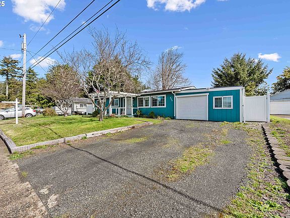 THIS IS A STEAL! Coastal Charm Meets Everyday Comfort! Fall in love with this beautifully updated 4 BEDROOMS, one-bath home nestled on an 80’ x 100’ lot, offering 1,653 square feet of inviting living space. WITH 2 LIVING ROOMS & OFFICE. SO MCUH TO OFFER AND SO MUCH SPACE! Roof is approx 5 years old. A welcoming covered front porch opens to a beautifully landscaped front yard, perfect for morning coffee or evening chats. Inside, natural light pours through oversized skylights above the living room and kitchen, creating a bright, airy feel. The home features newer flooring and carpet, a stylishly updated kitchen with modern cabinetry and countertops with eat bar, natural gas, and a tankless hot water heater, ensuring comfort and efficiency year-round. Step outside to a spacious sunfilled fully vynal fenced backyard. Ideal for gardening, entertaining, simply relaxing in your own private retreat. There’s also RV parking, offering extra flexibility for toys, travel, or guests. All this just minute from the stunning Oregon coastline, the dunes, and local shopping. This home is the perfect blend of charm, comfort, and coastal convenience. DO NOT let the garage fool you, IT IS Very LARGE. The garage door makes it feel small. Come see it today, you won’t want to leave!