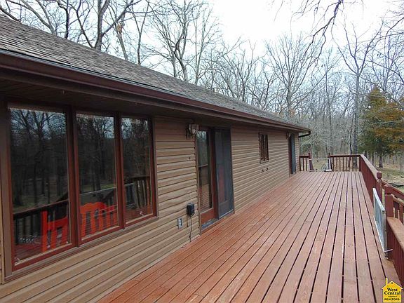Looking for a private isolated home in the woods? Look no more... you'll be right at home with nature living on this secluded 28+ Acres of Timber in a very well maintained 3 Br, 3 Ba Home. Enjoy the covered front porch as you witness all the wildlife that abounds. The home features tile flooring in LR, DR, & new tile that looks like wood in the Kit. built-in china cabinet, book shelves & a desk, a large laundry/sewing room with a laundry chute and bathrooms that are handicap accessible. Additionally, there is a workshop in the walk-out basement and another work area in the 1/2 car garage which is perfect for keeping your side-by-side close by. Large decks surround 2 sides of the Home, and if the 2 1/2 car Att. garage isn't enough storage for your toys then you'll enjoy the outbuildings as well. Outbuildings are - 24 x 35 with gravel floor and electric, + 30 x 48 shop with concrete floor and electric. There is also a loafing shed with a fenced in pasture area and some additional sheds for even more storage. Pretty Bob Creek runs on 2 sides of the property and you'll have fun finding mushrooms and discovering the many elements of nature around the manicured area down by the pond. If the wooded acreage that comes with the property isn't enough then you can explore the 800+ acres of CORP land just across the road. Located less than 3 miles from Bucksaw Marina on Truman Lake. Call today to schedule your private viewing of this country paradise.