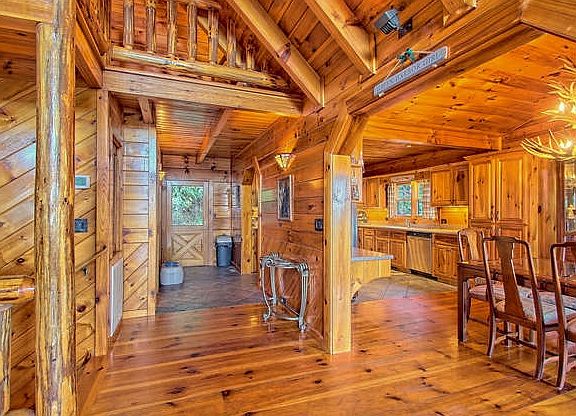 Authentic custom home in Shiloh equestrian development. Three bedroom/3.5 bath home with den, loft, and full finished basement. Heart of pine floors, stone stacked wood-burning fireplace, covered and open decks to take in the long-range mountain views with a peek of Lake Chatuge. Custom stairwells with split log stairs, dove tailed corners, and hand-finished railings. Open post and beam ceiling. True log home. Hiking and riding trails through development. Come see what the real deal looks like!