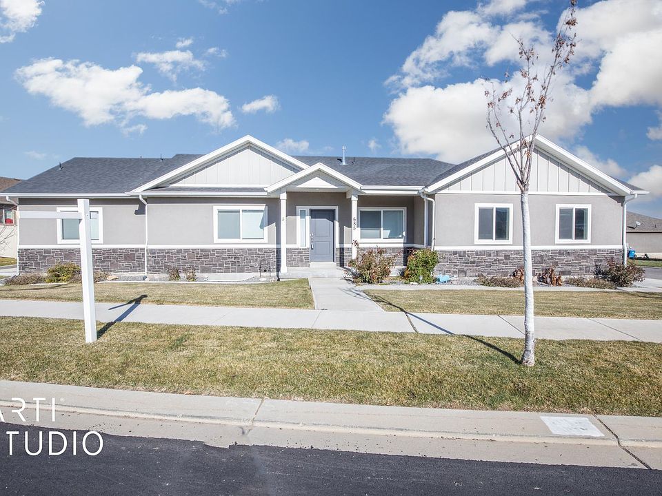 Are you looking for a shorter-term (6-month) lease on a beautiful home? Don't miss this extraordinary 4 bed / 2.5 bath rambler in Santaquin. This beautiful home sits on an awesome corner lot in a quiet and welcoming Santaquin neighborhood. The mountain views alone make this one a must-see! The home features an open-concept design with a built-in entertainment center/bookcases. The large kitchen and dining areas are perfect for gatherings of any size. The modern kitchen boasts granite countertops, a huge island, and tons of counter and cabinet space. A mud room with custom storage is an added nice touch.