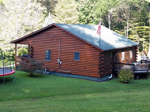 If you're looking for privacy, a couple acres, a beautiful log home, look no further. This beautiful home has it all. This move-in condition home is being sold "As-Is" is priced to sell. There's three finished rooms in basement, one could be made into a fourth bedroom. Can't you just picture yourself relaxing on the large front porch or sitting on the back deck enjoying the peacefulness, not to mention deer and turkeys visiting!! This one is a must see!! Call today as it won't last long.