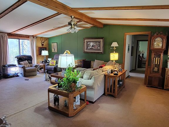 Lovely Ranch on 20+/- country acres! Don't miss out on this 1990 manufactured home with an addition, nicely set back off the road with a circular driveway. This home boasts an open floor plan with a large living/dining area that has high ceilings and a stone fireplace, country kitchen with plenty of cabinets, four bedrooms and 3 full baths that include a primary bedroom en suite with jacuzzi tub and a walk in closet . There is also a laundry room with lots of storage and a wonderful rear enclosed porch and a deck, which is great for entertaining or just to enjoy the peacefulness of this property., Beds Description: Primary1st, Baths: 2 Bath Lev 1, Beds Description: 2+Bed1st