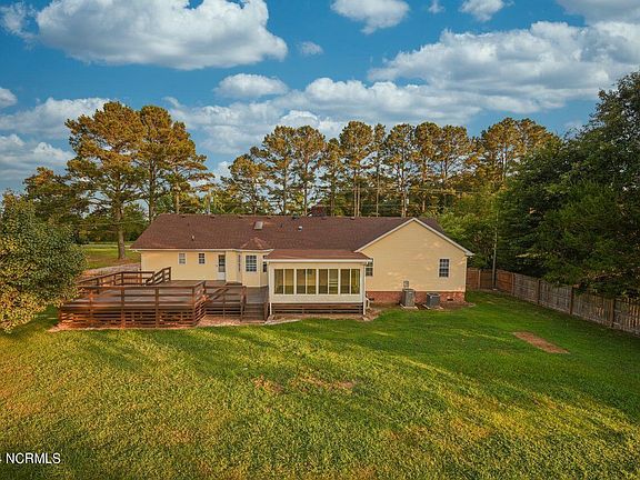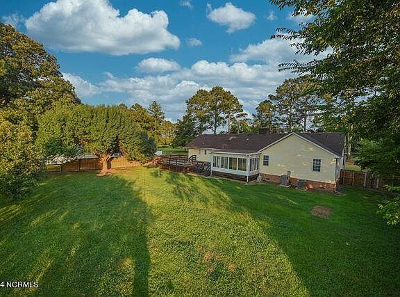 This exquisite newly remodeled home boasts three spacious bedrooms, an office/flex room and 2 and a half baths. As you enter, you will be greeted by a cozy sitting room, complete with decorative shiplap & fireplace, adding a touch of elegance and warmth. Adjacent is the dining room, perfect for hosting gatherings or enjoying family meals. The heart of this home lies in its inviting living room, where yet another fireplace takes center stage, creating a cozy ambiance for relaxation or entertainment. The kitchen features modern stainless-steel appliances, ample counter space and breakfast nook. One of the highlights of this property is the 4 seasons room, which offers a panoramic view of the huge deck, fenced yard and shed. Home sits on over 1 acre in Moyock.