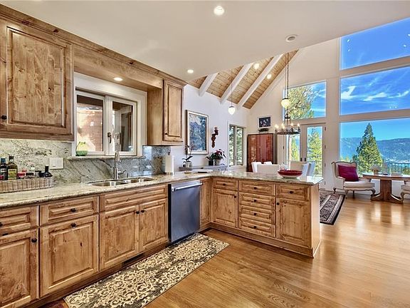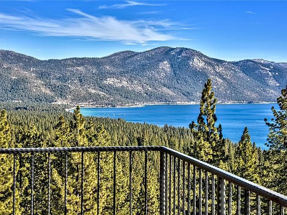 Exceptional Modern property, uniquely positioned with panoramic views of Lake Tahoe's Northeast crystal clear shores. Full remodel completed in 2017 has elevated a comfy Tahoe-style retreat, into a 3 level relaxing getaway. The expansive main-level deck allows for a wide view of the lake, opening off the main-level great room. Engineered European white oak floors and bright interiors allow for vibrant year round tones. Each of the three bedrooms feature views of the lake, including the primary suite-loft on the upper floor. All three offer privacy and views towards open space and the lake. The bedrooms/flex-spaces on the lower floor open up to a private deck. Air conditioning has been installed on the main level as well as the primary suite (a rare attribute in Tahoe). A two car garage with epoxy flooring, plus an extra parking pad out front for guests. The delightful panoramic views make this house a rare opportunity to own a precious view that most will only dream about.