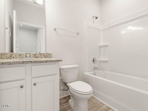 The Kennedy is a 4-bedroom, 3-bath home with 2197 square feet of living space located in WindMark Beach. Standard features of this home include beautiful quartz countertops with undermount sinks in the kitchen and all bathrooms, 5 panel wood doors, engineered vinyl plank flooring throughout the entire home and 9-foot ceilings throughout. Stainless steel appliances included are a free-standing smooth top range, microwave, and dishwasher. The kitchen features a large walk-in pantry, disposal and water filtration system. This unique floor plan features a mother-in-law suite complete with its own entrance, kitchen, bedroom, bathroom, heating and cooling and laundry. WindMark Beach is a tranquil community where one can enjoy the natural settings with boardwalks, walking paths, bike trails, and deeded beach access. WindMark Beach also offers residents numerous luxury amenities and features including a community pool, a gym, restaurants, packaging store/bar, beach equipment rentals, roving security, community fire pit, local shopping, and a versatile community center.