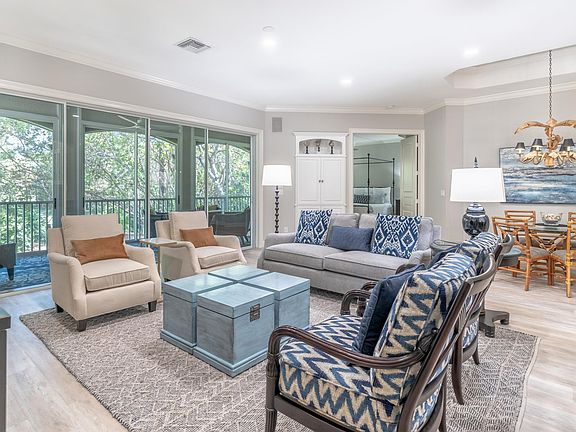 SEASONAL RENTAL (3 OR 4 MONTHS) FOR 2024 Highly sought after Pelican Bay Coach Home. . . . Newly tastefully decorated coach home in beautiful Pelican Bay. Lovely unit with calming aesthetic and open airy feeling with 10' ceilings throughout. Located in a highly desirable gated community (The Pointe) with access to all Pelican Bay amenities. This spacious 2nd floor unit has 2760 sq ft with 3 bedrooms plus den, 3 baths and a 26' glass enclosed lanai with expansive private park views. Owner's bedroom and second bedroom have en-suite baths. A cook's kitchen is newly updated with new quartz tops and new appliances. The unit has an attached 2-car garage. High speed fiber optic internet, electric and cable are included. Fresh paint throughout with new flooring and new furniture. Comparable sized units with park views in the complex have recently sold for $1.7m. The Pointe complex includes large pool/spa tub surrounded by royal palms, poolside grills, party room w/kitchen, gym and reading room. Pelican Bay amenities include private beaches, two beach restaurants, walking berm, community center, fitness center, and tennis club. The beach access tram is walkable from the unit. Please contact owner for more photos. $16,500/month -- minimum 3-month lease. All utilities included. This is a no pet/no smoking unit. Must pass background check, credit app, and employment history for The Pointe and Pelican Bay Community approval. Application fees and taxes are additional.
