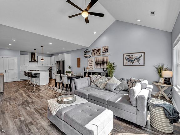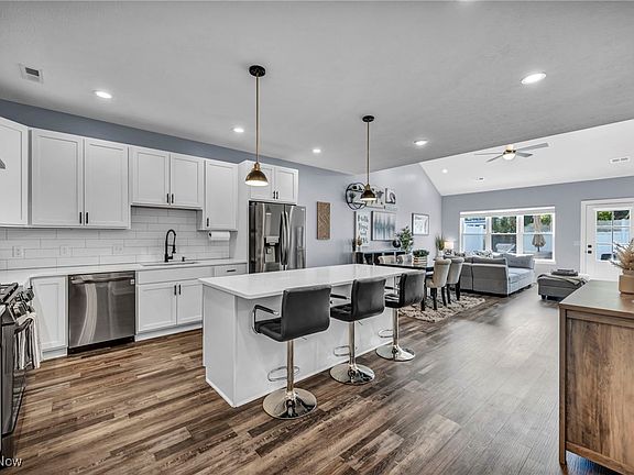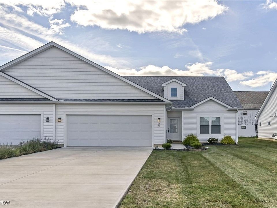 Newly built townhouse located in the Vicksburg Court community adjacent to the Grey Hawk Golf Club in the village of LaGrange. This 3-bed, 3 full bath home, with first-floor primary suite, offers over 2,346 sq ft and was thoughtfully designed offering modern convenience and versatile living spaces. An eat-in kitchen is a chef’s delight, with all stainless steel appliances, quartz countertops, subway tile backsplash, shaker cabinetry, and a breakfast bar, and seamlessly flows into a vaulted great room, where natural light abounds and a sliding door opens to a private patio, ideal for both relaxation and entertaining. The first-floor primary suite features a spacious walk-in closet and a private en-suite bath with a double vanity and tiled walk-in shower. The main level is completed by a second bedroom, a flexible bonus room that can serve as a home office or fourth bedroom (currently set up as a fitness room), a full bath, and a convenient laundry room. Upstairs, discover a large open loft area, 3rd bedroom, another full bathroom and 2 oversized finished storage closet areas. There’s even an additional 400 sq ft of storage space above the attached 2-car garage that can be finished for added living space. Recent updates include: All stainless steel appliances, washer/dryer, range hood, window treatments throughout, added trees in backyard, and interior painting. INCLUDED are ALL kitchen appliances, washer/dryer, and window treatments throughout. The semi-annual HOA fee includes snow and trash removal. Conveniently located near I-480, shopping, restaurants, and other local attractions.