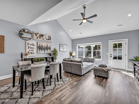 - Breakfast Bar, Ceiling Fan(s), Double Vanity, Eat-in Kitchen, Kitchen Island, Primary Downstairs, Open Floorplan, Stone Counters, Recessed Lighting, Storage, Vaulted Ceiling(s), Walk-In Closet(s)