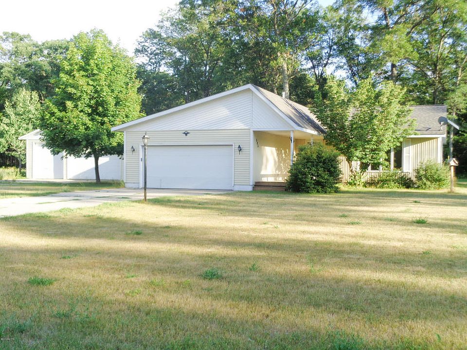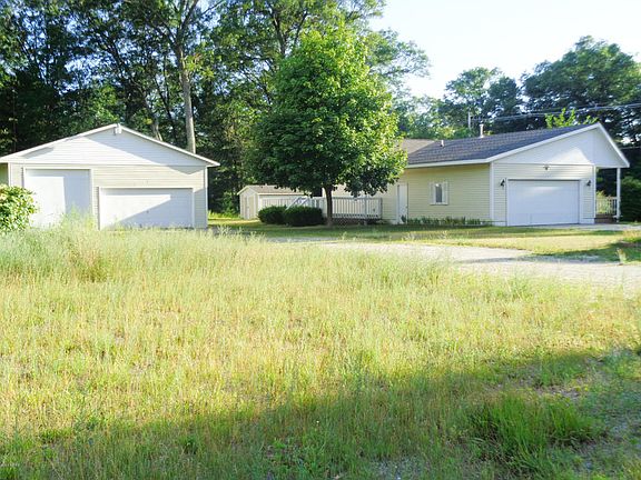What a beautiful Home on a beautiful Lot! This well cared for custom built home features main floor living at it's finest! Inside you will find a large kitchen with solid wood cabinets. 3bedrooms with 2 full bathrooms (including a Master Suite) and a family room in addition to the living room. Recent updates include; new roof, newer furnace and central air. How abouta large 2 stall garage and an exlarge Pole Barn with 12 ft overhead door for the motor home, boat or recreational vehicles?! Po le barn has electric and is plumbed for a bathroom! Yourprivate, wooded back yard is waiting for you to enjoy the Nicely landscaped yard with 7 zone u/g sprinkling. Home is on Natural Gas, includes central air and has a cement crawlspace.Located close to Lakes, Highway and Shopping yet quiet and peaceful on your 3 acre lot!