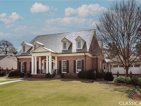 Welcome to 585 West Cloverhurst Avenue. This magnificent custom-built home sits on a premier street in the highly sought-after Five Points neighborhood located in Athens, Georgia. Every fine detail of this home thoughtfully executed and meticulously maintained. The welcoming front portico with beautiful ironwork and limestone leads to a grand foyer with hidden closets, hinting to all the special details and large scale proportions of this home including incredible wood work and fine finishes. Gorgeous wide plank oak floors throughout much of the home. Comfortable study with warm reclaimed heart pine from a Georgetown, South Carolinian pre-Civil War factory. This cozy room features other details like built-ins, coffered ceiling and French doors leading to sitting porch with brick, bluestone and ironwork details. Stylish powder room with uniquely designed sink cabinet and artful, handmade one-of-a-kind light fixture above. Handy wet bar with fridge and ice maker. Lovely formal dining room with beautiful wood and glass cabinetry opposite side of foyer which leads to large Butler's pantry / scullery and full walk-in hidden pantry, all with custom cabinetry and plenty of shelving / storage. Stunning light and bright entertainer's kitchen with marble counter tops, a multitude of handmade cabinets, professionally rated high-end appliances including Subzero side-by-side refrigerator / freezer and gas Wolf range with griddle, huge exhaust hood as well as warming drawer. Additionally, this open space has hand carved wood accents, Rocky Mountain hardware, shiplap walls, gorgeous and generous accent island with hand-carved walnut top and bar seating. This space accommodates a large table for gathering and leads to a sunny sitting room for chatting or watching TV. Big laundry room with sink, office area and limestone flooring. Spacious 2 car garage attached and side door exit. A grilling porch with built-in Wolf grill adjacent. Stunning great room with large scale French doors leading to back patio with bluestone flooring and custom designed ironwork overlooking fenced backyard. Lovely wood burning fireplace with gas starter, nearly 12 foot coffered ceiling and carved wood accents as well as impressive archways and crystal chandeliers add layers of interest to this room. Owner's suit on main floor offering a private and spacious retreat with spa-like bathroom including double vanities, soaking tub, walk-in shower and separate water closet with bidet. Generous divided closet spaces for two. Other features of main floor include elevator serving all three floors of this home, security system, built-in speaker system with surround sound, solid brass hardware and pulls, solid wood doors and cabinets as well as other unique designer touches. Upstairs two spacious sunny bedrooms with ensuite bathrooms and large custom walk-in closets. Plenty of extra storage spaces on this floor as well. Large flex room with built-in cabinets and desks that could be converted into a third bedroom or used for media or playroom. Sunny terrance level has spacious office, exercise room, powder room and another great room with 10 foot ceilings and hardwood floors. Stone fireplace with gas logs, built-ins and surround sound speakers. French doors lead to outdoor covered seating area. Full designer kitchen with rainforest marble countertops, more customer cabinetry with plenty of storage, as well as a full range of appliances. Dinning space as well as game room or more separate formal dining area. Second two-car garage with storage room off this lower level. Full additional light and bright bedroom with marble wet bar and full bathroom including zero step walk-in shower and water closet. Large closet. Additionally, there are several secure rooms for a multitude of uses. Outdoors includes professional landscaping, irrigation with well and accent lighting. Home features custom lightening, Flemish brickwork, cypress woodwork, copper gutters and slate roof.