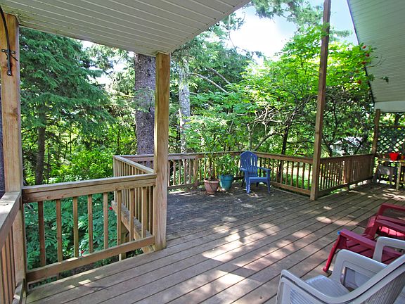 TUCKED IN THE TREES on a circular driveway, utterly private setting overlooking the forest yet only a few blocks to beautiful long quiet sandy beach as well as miles of hiking rails going to Cape Meares Lighthouse. Currently a vacation rental. Attractively updated interiors.New Luxury Vinyl Plank flooring installed mid-July. 372 sq ft of private deck looking into the woods. Vaulted ceiling, skylights, corner woodstove, open greatroom