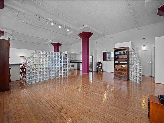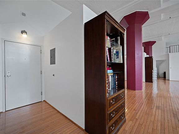 Gorgeous DOUBLE UNIT, 3-bedroom high-rise condo in the heart of Shadyside! Welcome to The Lofts!! Featuring hardwood flooring throughout with extended ceiling height in the main living space and primary bedroom. En suite bathroom features a glass-enclosed standing shower and bidet. Expansive open living space with huge windows offering stunning views and abundant natural light. Dining and bar area separated with glass partition. Second bedroom includes huge windows to ceiling and two closets. Upstairs, a versatile third bedroom overlooks the main space—perfect as an office or guest room—with a large closet. Main level features in-unit laundry. Includes 2 covered parking spaces in a secure garage plus a storage unit. Centrally located near top restaurants, shops, and local campuses. A perfect blend of luxury, light, and fantastic location in a secure building!