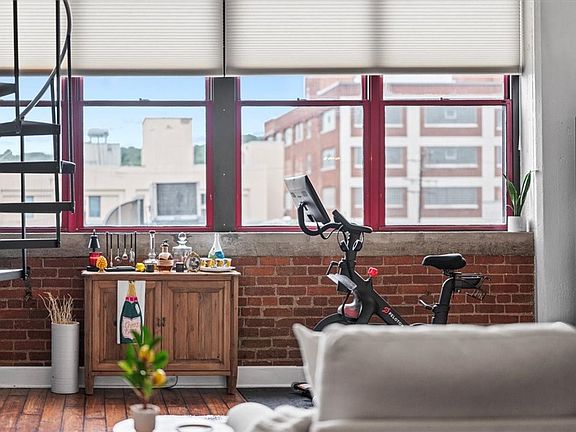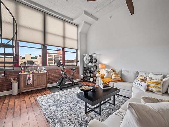 Welcome to #305, a condo that embodies the perfect blend of industrial chic and contemporary comfort, offering a unique living space that is both inviting and effortlessly stylish. As you enter, the open floor plan greets you with its spacious loft design, where exposed brick walls and extra-high ceilings create a raw yet refined atmosphere. Natural light floods the interior through expansive nearly floor-to-ceiling windows that feature custom window shades, offering panoramic views. A sleek spiral staircase leads up to the loft area, adding a touch of architectural elegance to the already cool, minimalist style. The updated kitchen features an abundance of cabinetry, counterspace, island, and coffee-bar corner! With its seamless integration into the expansive living and kitchen areas, hosting gatherings becomes effortless - whether it’s a small or large event! Two parking spaces are included with this unit!