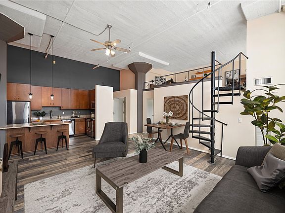 Welcome to your urban oasis in Centre Avenue Lofts!This contemporary 2-bedrm, 1-bathrm condo is perfectly situated, offering convenience and style in one package.You'll be captivated by the beauty of the updated kitchen, which boasts stainless steel appliances and ample counter space.The bathrm adds a touch of luxury to your daily routine.The spacious living area features large industrial windows, allowing natural light to flood the space, and a charming brick accent wall that adds character to the home's sleek, modern design.Throughout the condo, you'll find newly installed luxury wood vinyl flooring that not only looks fantastic but is also easy to maintain. In unit washer/dryer.Residents of the Lofts have access to a rooftop deck with stunning views, a fitness center within the building, and a personal storage unit.This condo comes with a covered assigned parking spot. You're just steps away from an array of restaurants, shopping options, and healthcare facilities. See the Video