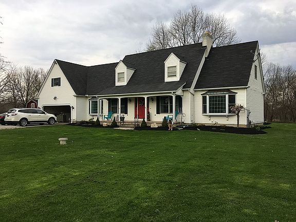 Dream home nestled 200+ off the road and over 2.5 acres! Country atmosphere minutes from I-90/254/conveniences! Classic cape cod appeal with a beautiful front porch! This home boasts over 2,600 sq. ft and a TWO master suites (one on the first floor and one upstairs). Large living room with a brick fireplace. First floor laundry room with great storage. Kitchen is very spacious with a center cooktop island, lots of counter space, stainless steel appliances! The sunroom is used as a morning/room dining room with lots of windows overlooking the gorgeous backyard! There is a first floor bonus space with an attached full bath and another area for a dining or office! Upstairs you'll find a second master suite and two bedrooms with a jack and jill bath. There are two huge walk in storage attic spaces and a basement! New central air 8/2019! Absolutely gorgeous backyard setting complete with deck, shed & fire pit! 2 car garage! A dream home!