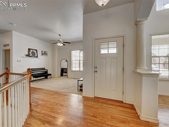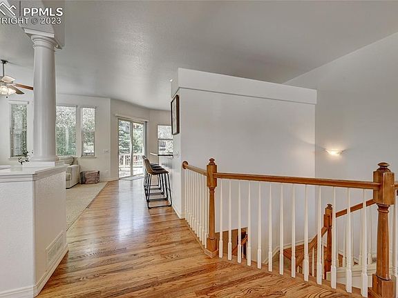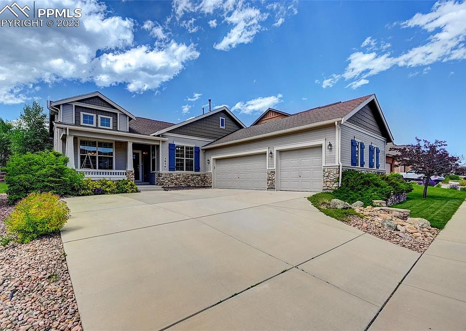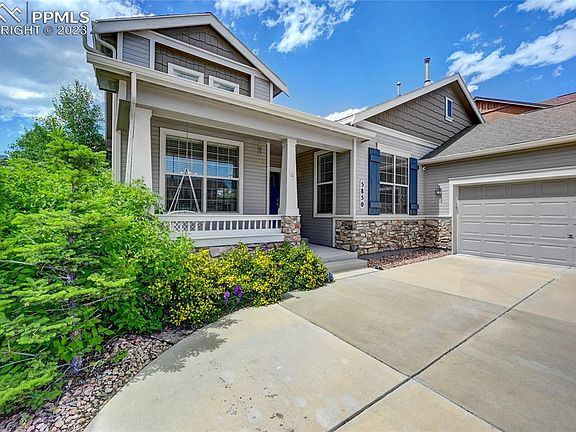 This move in ready home is nestled in the heart of the beautiful Wolf Ranch neighborhood in Northeast Colorado Springs. This sprawling ranch home is bright and open with fresh paint from top to bottom. With 5 bedrooms, 3 full bathrooms, multiple living spaces and an oversized 3-car garage, there is truly something for everyone in this exquisite home. The home welcomes you with a private and cozy covered porch that leads to the front door. Inside the home you will find a spacious and bright entryway that leads to the formal dining room and living room with double-sided fireplace and multiple windows making the whole main level flood with natural light. The kitchen has beautiful wood cabinets, granite countertops, stainless steel appliances, a generous sized pantry and breakfast nook. Also on the main level is the primary bedroom with vaulted ceilings and 5-piece en suite bathroom and walk in closet. There is one more bedroom, full bathroom and laundry room on the main level. Downstairs there are three additional bedrooms, a full bathroom and enormous entertainment room. The backyard is fully landscaped and fenced and has a very private feel due to the mature trees and foliage. The oversized 3 car garage has built in storage and is set up for a workshop! The property is located in an area with access to restaurants, shopping and entertainment and a quick commute to the Air Force Academy, Peterson Air Force Base and other local bases.