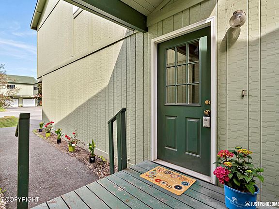 Excellent sweat equity upside for the handy homebuyer & smart investor. This 2BR, 1BA townhouse condo lives large! Open reverse 2-story layout w/vaulted ceilings, clerestory windows, wood accents & a corner fireplace. 2 bedrooms + full bath on the same level. Newer energy efficient/sound reducing insulated vinyl windows. Single garage + interior storage. Visualize new flooring & finishes..and wow!The potential in this place is huge. The bones of the layout are fashion forward. The appliances and surfaces are 30 years old, but interestingly they are lightly used. This an estate sale belonging to the same one-person homeowner for the last 30 years. The family says he never wore his shoes in the house and didn't cook. So while the appliances are vintage, they all turn on other than the trash compactor, which doesn't latch to engage the motor. There is a new garbage disposal and the homeowner had purchased two new bathroom sinks that were never installed. Find those as well as some new hardware still in the box in the closet. The dues are low - $260/mo covers exterior maintenance, grounds maintenance, water/sewer, trash and insurance. Great location - close to universities, hospitals and JBER. Walk to Reflection Lake one block to the north and Far North Bicentennial Park access is across Tudor. If you're looking for an opportunity to invest at a lower price point, come take a look...this is like a blank slate and you can refresh with your own style. Estate sale to be sold as-is.