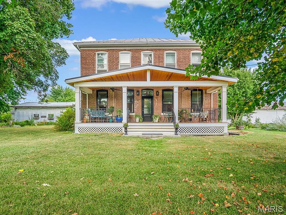 There’s something about this traditional brick farmhouse that just draws you in. Maybe it’s the way it sits back from the road, tucked away on nearly five acres, offering a sense of privacy and calm. Or maybe it’s the wide covered porch stretching across the front, practically inviting you to sit down with a cup of coffee and stay awhile.