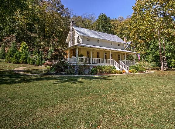 Private Compound!'Period' Farmhouse & Custom Log & Stone (2012) Residence combine for Unique Escape.Outdoor Kitchen Pavilion,Pool w/Spa,Waterfalls & lush landscaping.Year round creek,springs,pasture,wooded hillsides,trails & ridge views.Barn.Ready to Go!