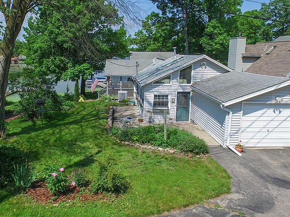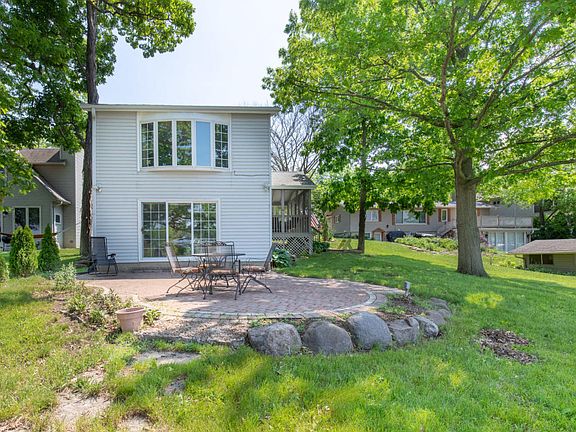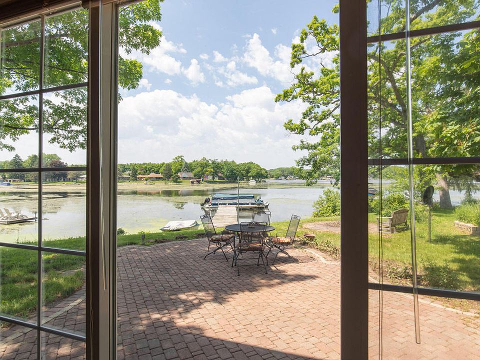 55 feet of water frontage on East shore of the Fox River with 1,100 acreas of navigable river plus Lake Tichigan to play on. Gourmet kitchen with quartz counter tops, island cook top, top of the line appliances. Great room with gas fireplace w/french doors leading onto large screened in porch. Kitchen, bath w/jacuzzi tub w/hand held shower and laundry, third bedroom and great room all on one level. Lower level bedroom suite with fireplace, murphy bed, bath, wetbar and fireplace with triple pane patio doors to paver patio with firepit. Large master bedroom with private bath and walk in closet. Brazilian mohagany flooring in main level, heated tile flooring in office/lower level, carpeted master and third bedroom. Concrete patio on back and side, screened in porch and paver patio with fire pit on water side.