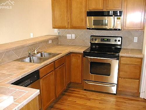 Come see this luxury townhouse with walkout basement and unobstructed Pikes Peak views! Features include, main level master suite w/ 4 PC bath, walkout great room w/ fireplace, kitchen with counter bar and pantry, 2 other full baths, ML laundry and 2 car garage. Walkout lower level includes L-shaped family room, bathroom and bedroom. Outdoor elevated deck and lower patio make entertaining easy. Central air for summer cooling. Shows Great! Easy access to all North Colorado Springs locations. Won't last long - avail 8/1