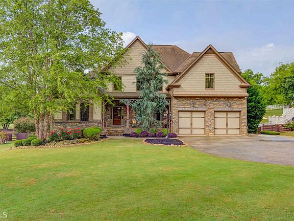 A luxury home finished to perfection! When you walk in the door you know you've found your perfect home. This 4 Bedroom /4 bath home is ideal for the most discriminating buyer & offers gracious living areas. The main level includes an impressive grand dining and family room with stone fireplace (one of 3), a master suite which has a beautiful bright spa bath, wood beamed study/office with fireplace, an epicurean kitchen with entertaining size bar and butlers pantry, a cozy keeping room with fireplace all with hardwood floors. The upper level offers 3 large secondary bedrooms, 2 baths and a study/reading nook or a perfect place for an exercise space or play area. The unfinished terrace level is a massive blank slate for all your ideas. The terrace level has a screened porch under the massive Trex deck which overlooks the inviting pool and built-in fire pit. The property is .81 acres and backs to a private pasture for ultimate privacy and relaxation. Enjoy the country living close to town and Lake Lanier. One of a kind custom built home with all the bells and whistles.