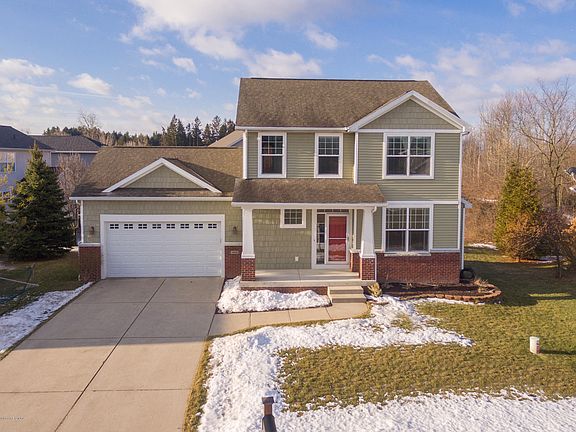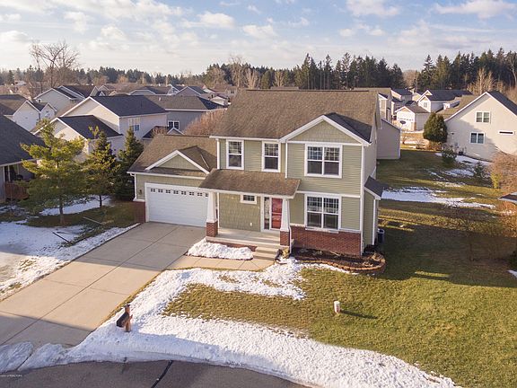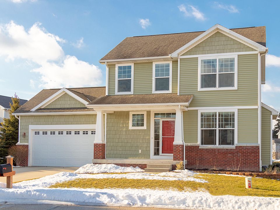 Welcome to 5850 Troyes, East Lansing. This custom-built home is in an established subdivision and is located on a cul-de-sac. Built in 2006 this home has many built-ins including shelving in the front entry, entertainment nook, bench in the mud room, master closet and shelving in one of the bedrooms. Covered front porch is cement and has room for 2 chairs. The living room has a gas fireplace and ceiling fan. The dining area and kitchen have hardwood flooring. Seating at the breakfast bar will accommodate 3. Deck off the dining room has iron railings. Attached garage is finished, extra tall and has a large shelf for extra storage. The laundry is located on the first floor. It is its own room with a shelf and cabinetry for additional storage. The back entry has tile flooring, two closets and a half bath. The second floor has 3 bedrooms and 2 full baths. Master suite has a ceiling fan, walk in closet and a full bath.