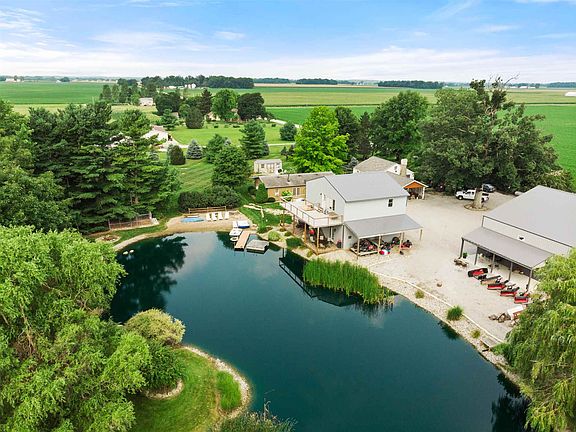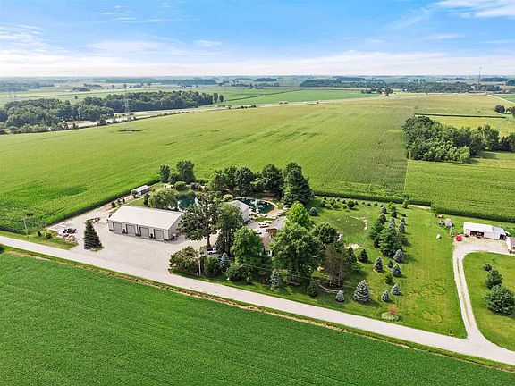 *CONTINGENT-ACCEPTING BACK UP OFFERS* A little piece of heaven close to Fort Wayne! Situated on a little to no traffic dead end country road. There are two huge outbuildings for storage for all of your toys or could be rented for extra income. The largest building is 60 x 96 with five large 14 x 14 commercial doors and a beautiful office space. Total of 11,200 of garage space. The smaller outbuilding is 32 x 38 with a double deck (upper and lower).Upstairs there is an almost finished apartment with an amazing view which is ready for your finishing touches. The well maintained farmhouse features ceramic tile and wood floors throughout the home. This property also has a finished guest home or a mother-in-law suite. Perfect for small construction, trucking, or landscaping company. A fully stocked pond with bass, blue gill, koi and more finishes it off.