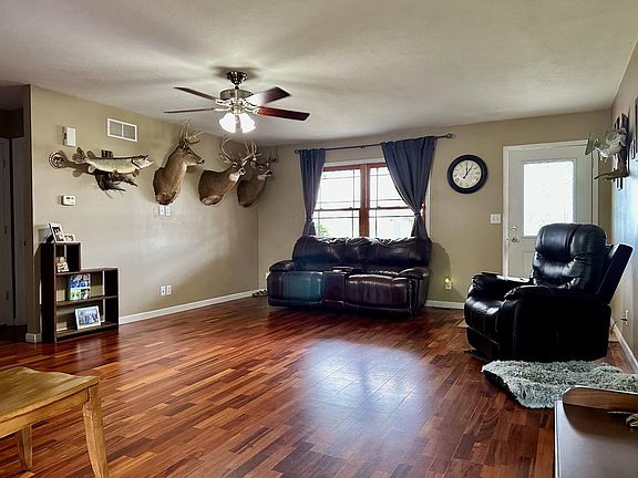 Well kept and updated three bedroom, two bath ranch style home with a partial basement, two car attached garage, and a 30 x 40 pole barn (concrete floor and electric) sitting on two acres. Almost 1,400 sq. ft. of open concept living space with a split bedroom layout. Other amenities include a covered front porch, back deck with fenced yard, and a 12 x 16 shed. Full compliment of kitchen and laundry appliances available with acceptable offer.