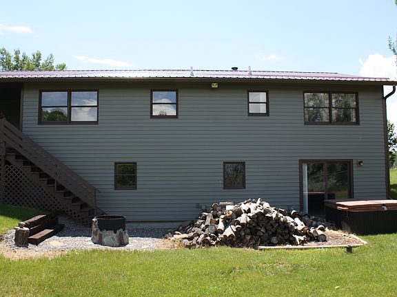 Horse property! Rancher featuring 5 bedrooms (3 on the main level), 3 full baths. Steel seamless siding and steel roof. Updated flooring throughout. Master bedroom has hardwood floor, 2 large closets, and full attached bathroom. Stainless steel appliances all stay. Dining room walks out to covered deck. Walk out basement. 2 strong wells, one feeds the house the other the yard. Also, 2 ponds in the fenced pasture. 1 basement bedroom is non-egress. Seller's in the process of installing heat pump for upper level air and heat - ask agent for details.