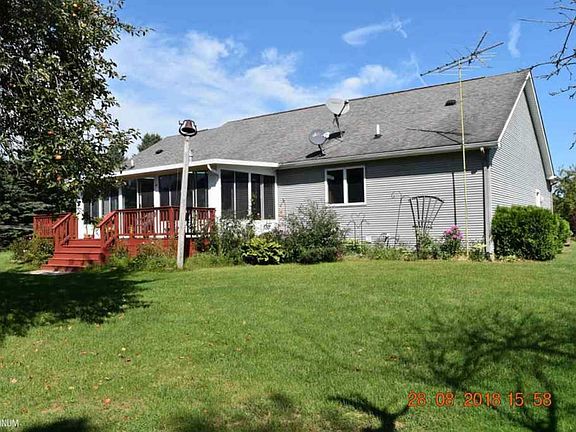 This Country Dream Split Ranch sets on 5.3 acres, complete with Apple, Pear, Peach, fruit trees & grape vines and raspberry bushes. This ranch includes open floor plan lots of kitchen counter space, large pantry, oak cabinetry, snack bar recess lighting, above cabinet lighting, open living room with natural gas fireplace 2 door walls walks out into 3 season room and back deck. Master bedroom with private full bath & walk in Closet, 1st floor laundry fully finished basement for family entertainment. please note square footage includes back closed in 3 seasons room. All Showings must attended with a licensed Realtor in person. All Offer's are subject to a removal of a 72 hr Contingency.