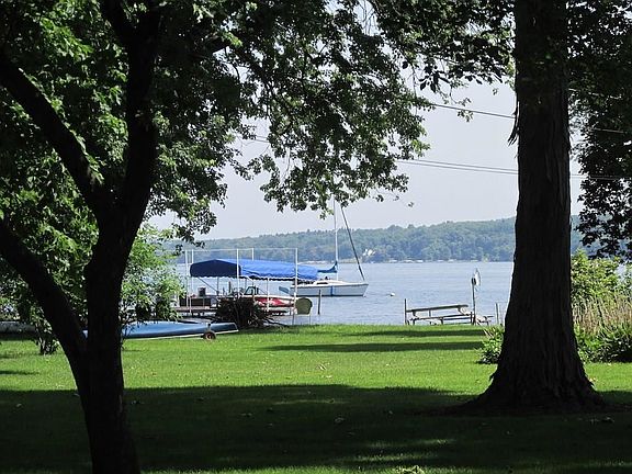 Looking for a custom built Lake view home with Association privileges to a dock, boat slips and a private tennis court? Tucked away down a pretty tree lined street, is where you'll find this open concept home. The Living Room has lake views, hardwood flooring, vaulted ceilings, a wood burning fireplace with gas starter, plus tiger maple built in bookshelves. The informal Dining area is just a step away from the Kitchen where glass French doors open onto the awning covered patio. Meal preparation is a breeze in the Kitchen with its maple cabinets and corner breakfast counter. The first floor Master Bedroom has lake views, a walk in closet, and private Bathroom. Two ample sized Bedrooms and a Bathroom are located on the second floor. Don't delay, hurry to see this lovely home today!