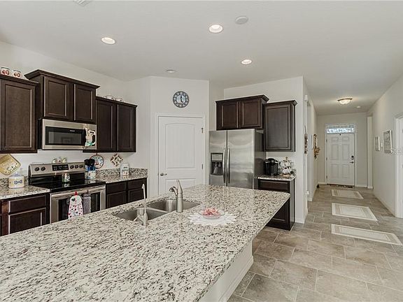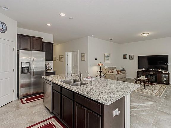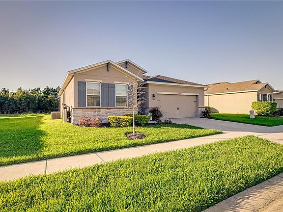 Welcome to the quiet, GATED, 55+ community of The Preserves at Lakeside Landings! BETTER THAN NEW! This home has many upgrades that the owner purchased after moving in less than 2 years ago. As you approach, you'll notice the screened front porch, this allows for a great breeze to come through the home on cool weather days! This home has 3 bedrooms, 2 baths, 2 car garage, 1722 heated & cooled square feet. When you enter the home on the left is the guest bedroom and guest bathroom. On the right side is the garage. As you enter through the garage, there is a valet counter to hang keys and such and the laundry room. The laundry room is connected to the walk-in closet of the Owner's Suite, making it super easy to hang clothes as soon as the clothes dryer is done! The living area is open to the large kitchen with beautiful granite island and walk-in pantry and offers views of the water and woods. This is a triple split plan with all bedrooms separated for privacy. There is a screened lanai with ceiling fan to enjoy the beautiful views of the water and woods. You'll love features such as stainless appliances, high kitchen cabinets with upper molding, custom blinds, rain gutters in the front, stone front exterior for added beauty, water softener, tile floors, beautiful landscaping plus all the benefits of owning a NEW HOME such as lower utility bills, lower insurance cost than buying an older home. This is a SMART HOME with optional ADT Security System. Enjoy the community pool, playground, multipurpose field as well as fishing area on Lake Fannie! The HOA fee includes lawn maintenance such as mulching, fertilizing, lawn pest control and gated entrance! Located a short drive to Orlando International Airport, Tampa International Airport, other regional airports and the BEST BEACHES IN THE WORLD! Schedule a private tour today!