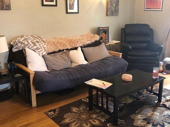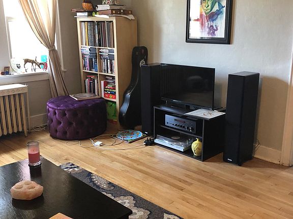 Charming 1 bedroom Sq Hill apartment with hardwood floors, ceiling fans , mini blinds, large living room with a full walk in closet, a huge eat in kitchen with tons of cabinetry and counter space, a dishwasher, lots of natural light. The bedroom is also spacious with lots of windows, and the bathroom has beautiful vintage tile with the original stained glass window. Heating included, free street parking, garage availability, on the bus line. A real Must See! Tenants pay a nominal water fee, trash fee, heat is included as well as cooking gas.This is a non smoking building. Free street parking , paid garages in rear if needed. On the bus line 3 minute walk to Starbucks