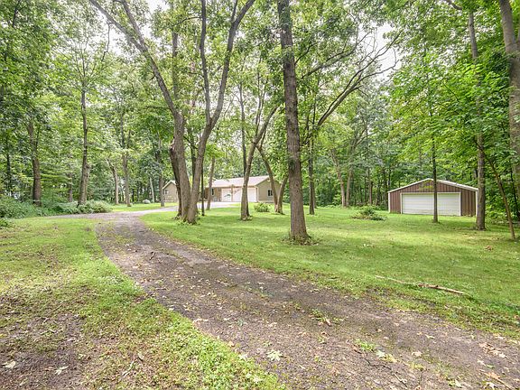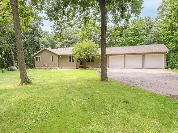 Escape to tranquility in this immaculately cared for custom built home on almost 9 wooded acres. This one of a kind setting features matures trees, friendly wildlife, walking paths, gardens, fruit trees/shrubs, asparagus and rhubarb. All the big ticket items are done! New Roof, Siding, A/C, Water Heater and More. Inside you will find an open concept living/dining/kitchen space that opens to your back deck. All four bedrooms are extra spacious with great closet space. Full bath on each level for convenience. Lower level is finished with a rec room, family room, bedroom, full bath, and plenty of storage space. 3 car attached garage and bonus pole shed will hold all your tools, hobbies, & more. This really is a private oasis! Move in ready, but room to build equity with your cosmetic vision!