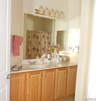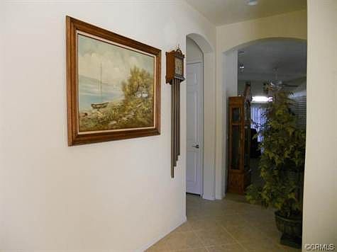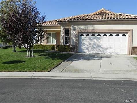 Popular Trillion model on a corner lot. 5 star energy efficiency rating. Beautiful brickwork and extended Alumawood patio cover in back. 18" square tile in high traffic areas, neutral carpet, washer/dryer and refrigerator included in sale. Plantation shutters throughout. Hard surface counter tops, pull-out shelves and lazy susan corner cupboard in kitchen. Wet sink in laundry room. Two bedrooms, den, two baths, fireplace, built-in bookcases and entertainment center in living room. Vinyl fenc...